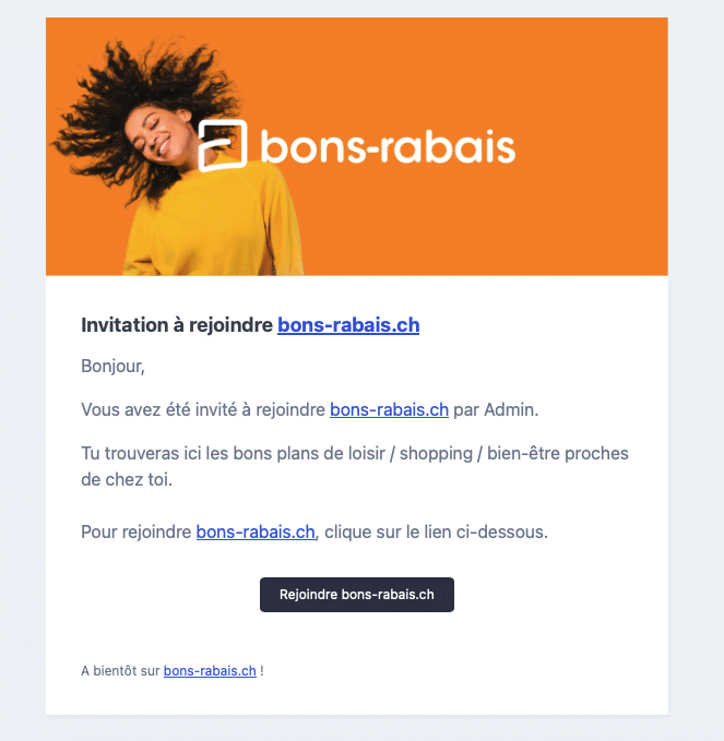 Accédez à votre tableau de bord ici : bons-rabais.ch/dashboard/invitations